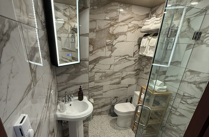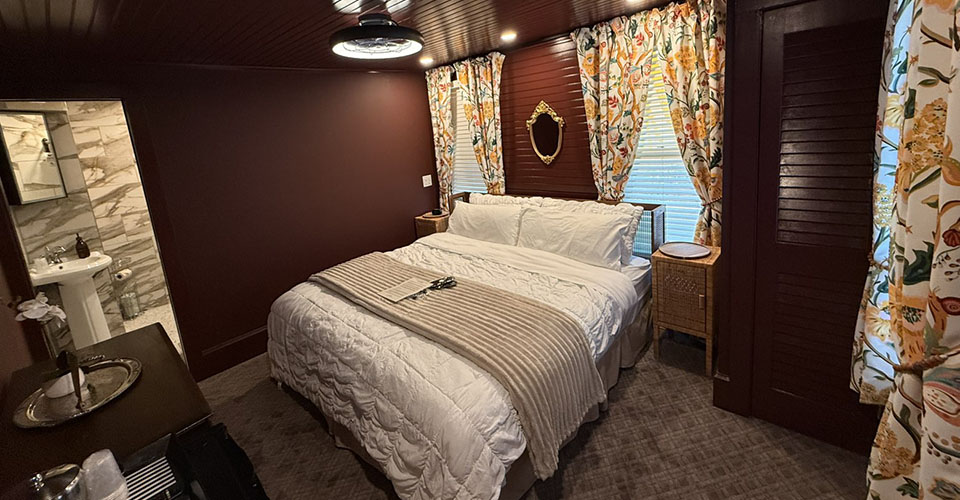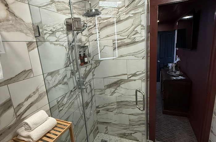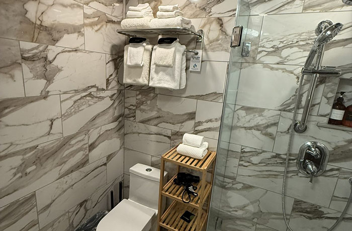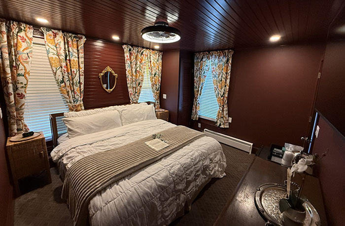 Room 23 is located on the 2nd Floor. Room 23 features a King size bed and private bathroom, 32” TV, alarm clock radio, room sized refrigerator and ceiling fan.