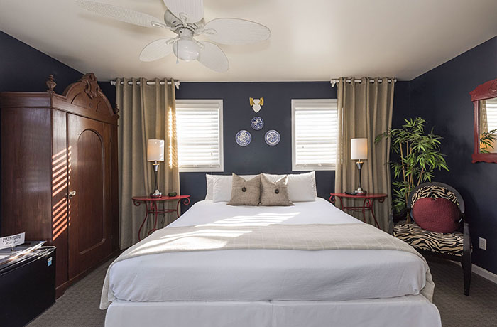 Room 34 is located on the 3rd Floor closest to the entrance of the 2nd floor deck. This room features a King size Bed, 32” TV, alarm clock radio, hair dryer, room safe, ceiling fan and Private Bathroom with tile floors.